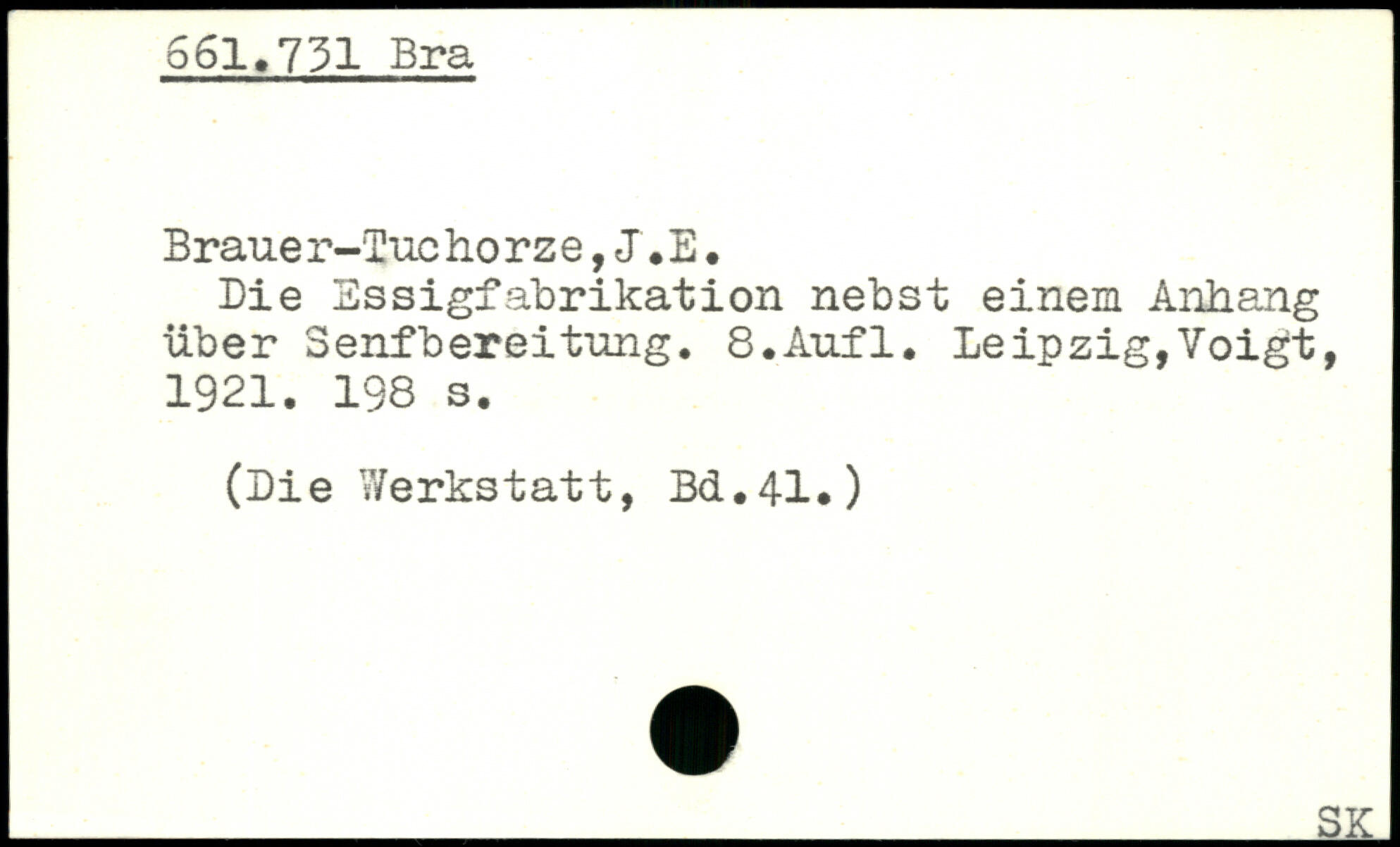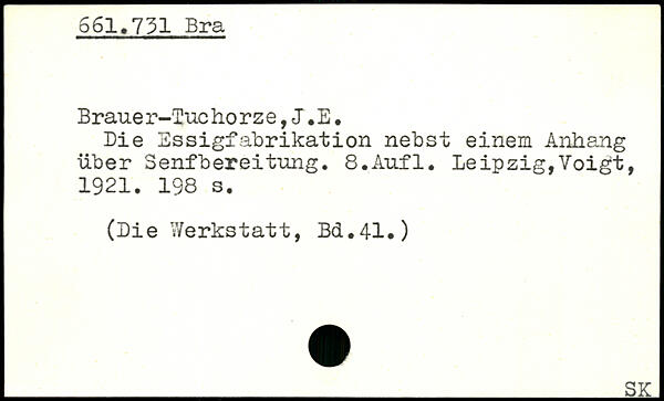 Braue r-Tueho rz e,J.E. Die Essigfabrikation nebst einem Anhang über Senfbereitung. S.Aufl.