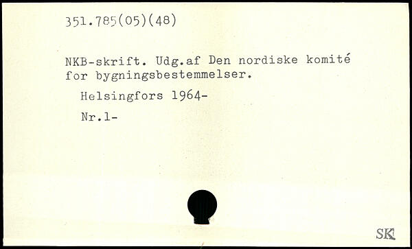 NKB-skrift. Udg.af Den nordiske komité for bygningsbestemmelser.