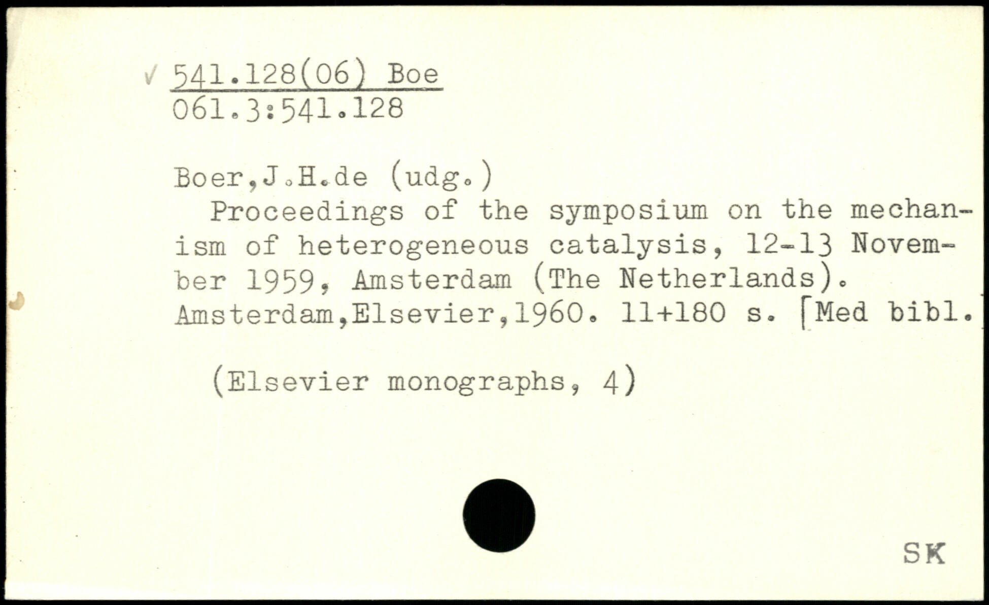 Proceedings of the symposium on the mechanism of heterogeneous catalysis, 12-13 November 1959> Amsterdam (The Netherlands)