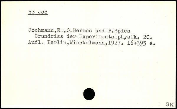 Jochmann,E.-,0aHermes und P.Spies j Grundriss der Experimentalphysik.