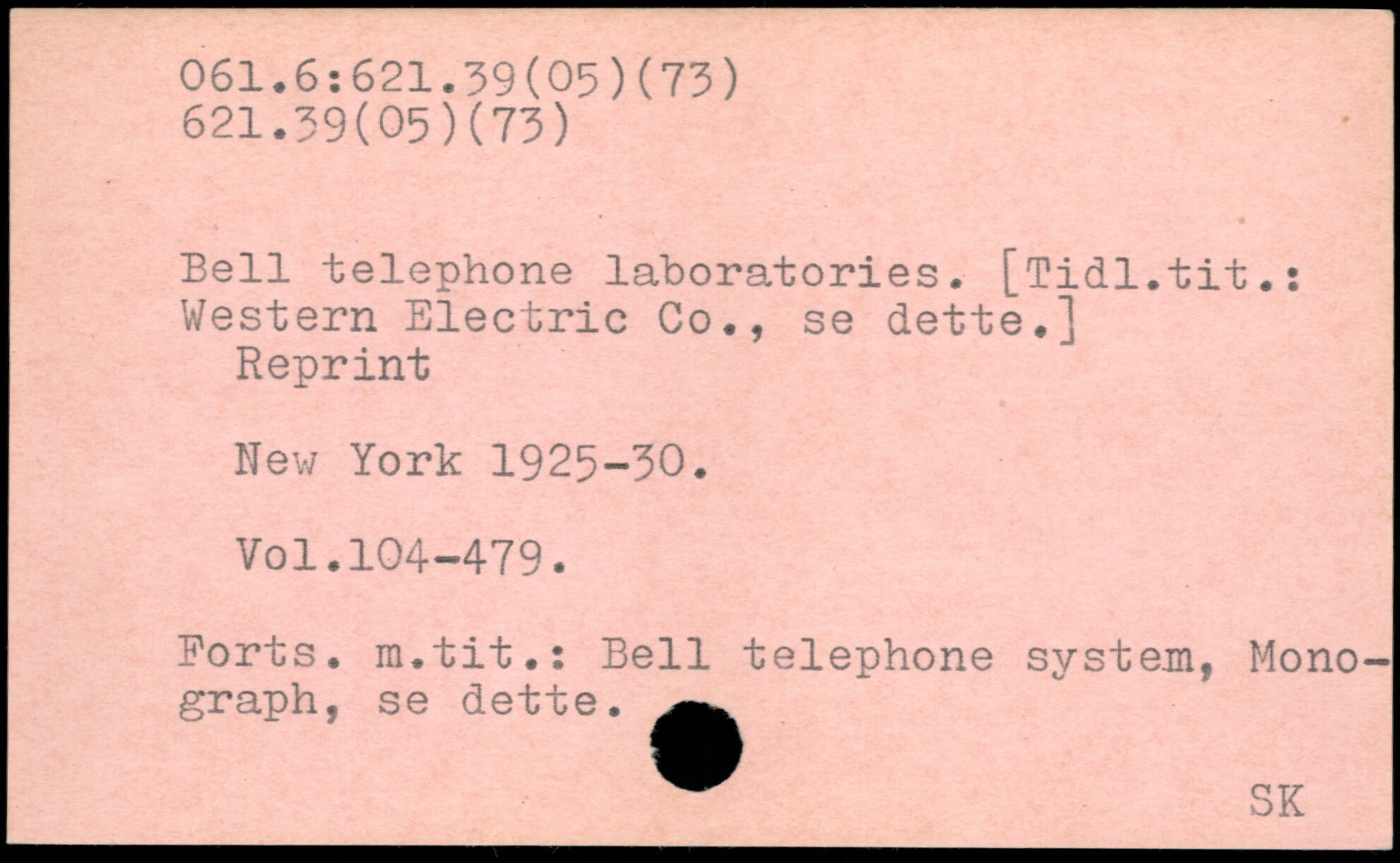 Bell telephone laboratories. [Tidl.tit.: Western Electric Co., se dette.] Reprint