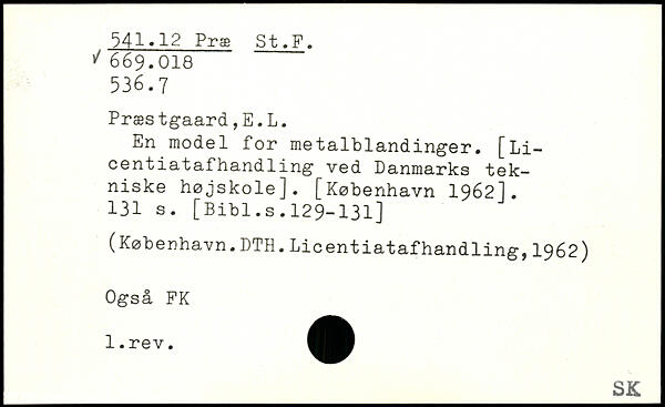 En model for metalblandinger. [Licentiatafhandling ved Danmarks tekniske højskole].