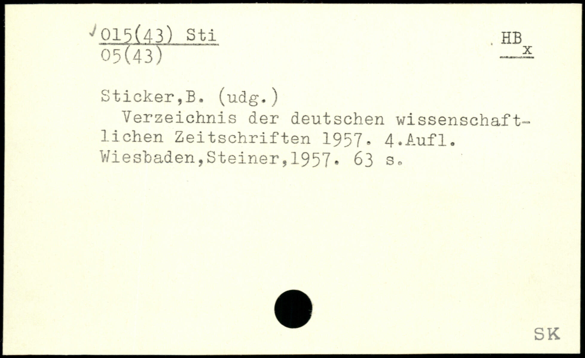 Verzeichnis der deutschen wissenschaftlichen Zeitschriften 1957