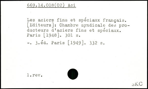 Les aciers fins et spéciaux français. [Editeurs]: Chambre syndicale des producteurs d'aciers fins et spéciaux.