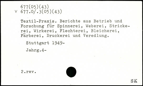 Textil-Praxis. Berichte aus Betrieb und Forschung für Spinnerei, Weberei, Strickerei, Wirkerei, Flechterei, Bleicherei, Färberei, Druckerei und Veredlung.
