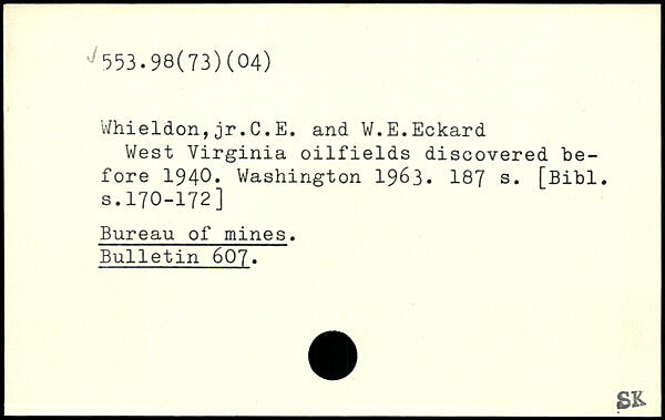 Whieldon,jr.C.E. and W.E.Eckard West Virginia oilfields discovered "before 1940.