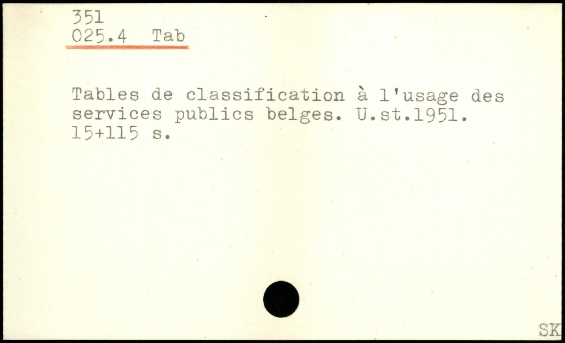 Tables de classification à l'usage des services publics beiges. U.st.1951.