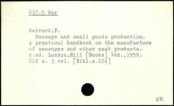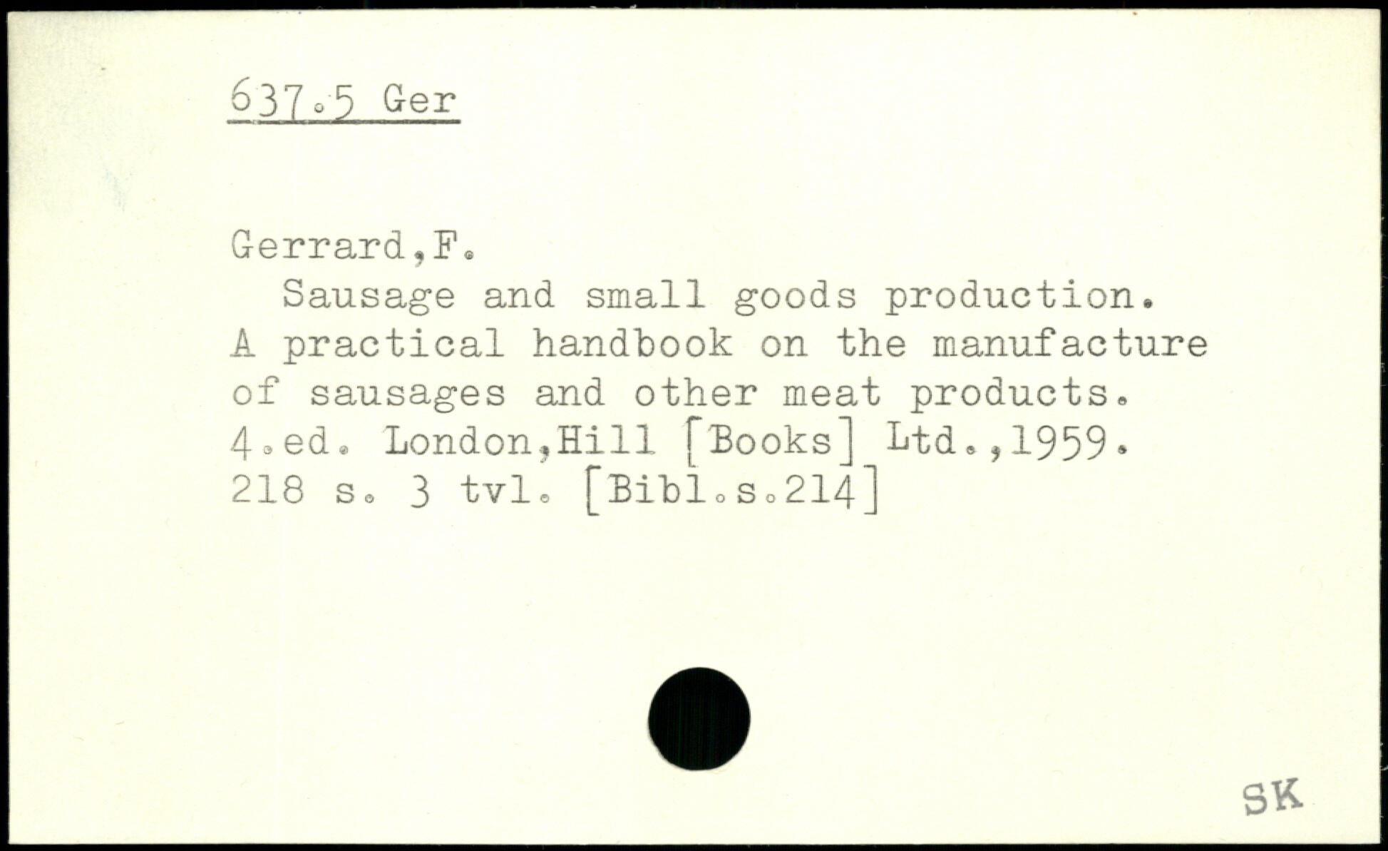Sausage and small goods production. A practical handbook on the manufacture of sausages and other meat products.