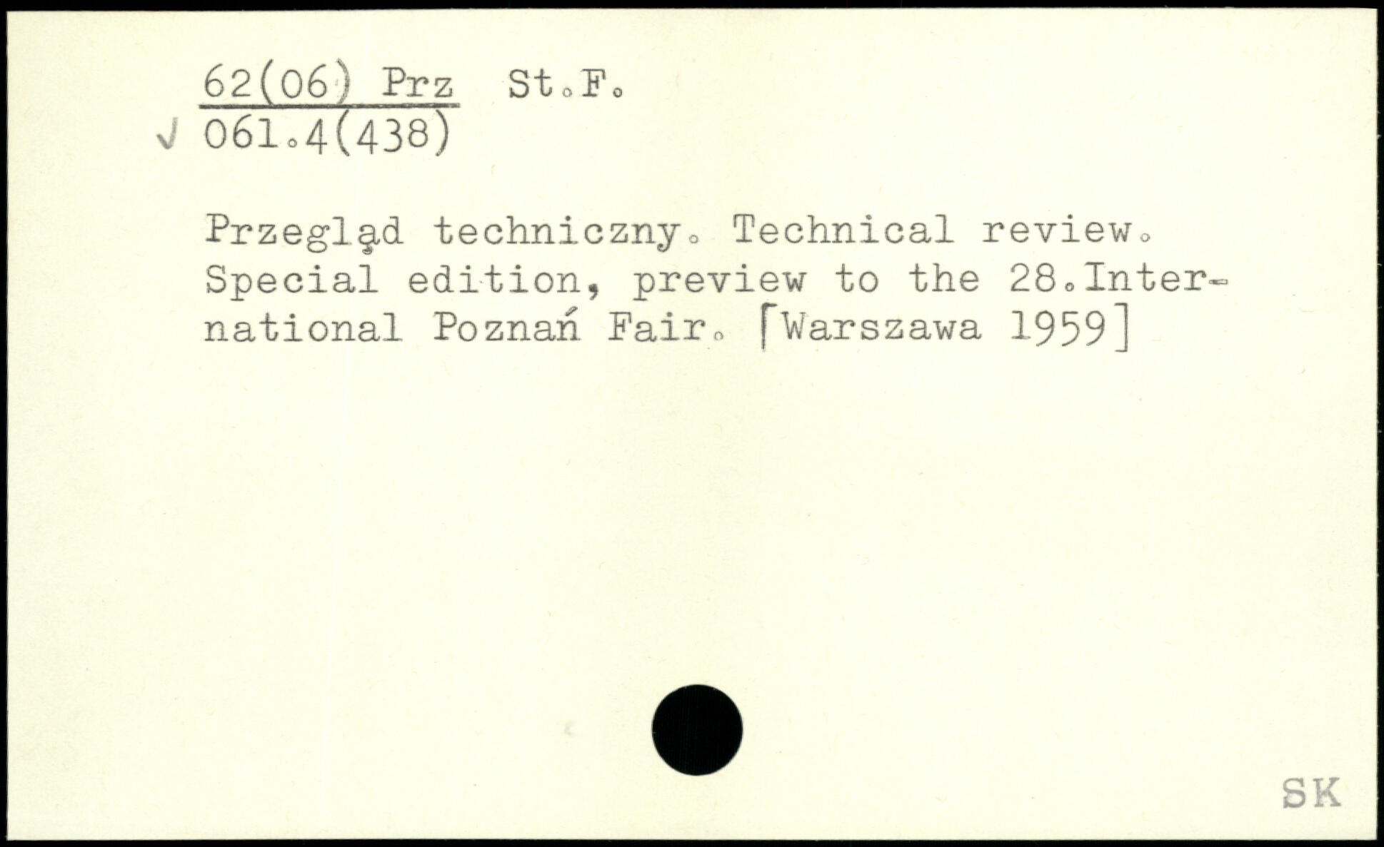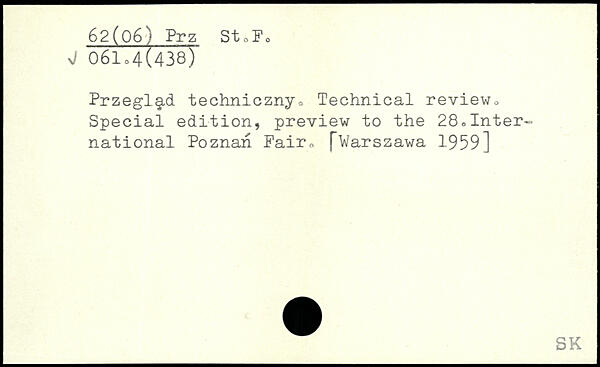 Przegl§,d technicznyo Technical review^ Special edition, preview to the 28,International Poznan Fair, fVarszawa 1-959]