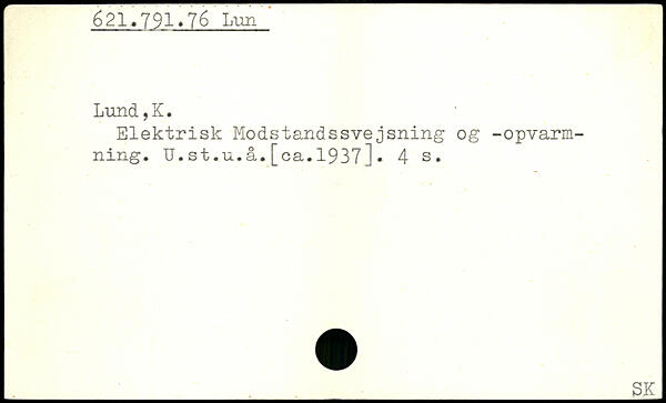 Elektrisk Modstandssvejsning og -opvarmning. U.st.u.å.[ca.1937].