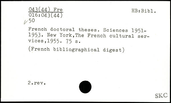 UDK: 016:043(44), 50, 043(44) Fre