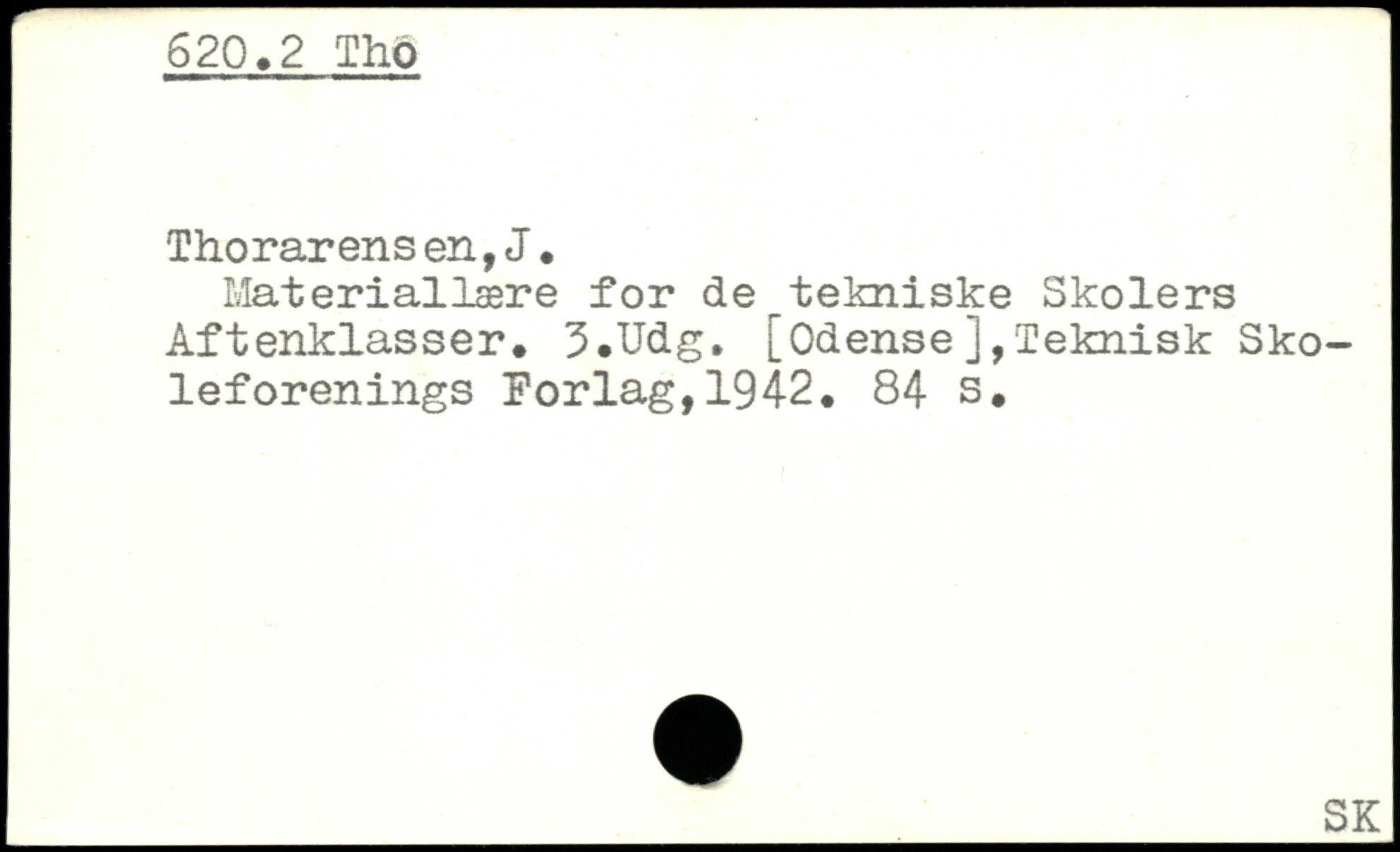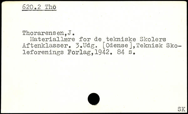 W I 620,2 Thô Thorarensen,J. Materialisere for de tekniske Skolers Åftenklasser, 3.Udg.