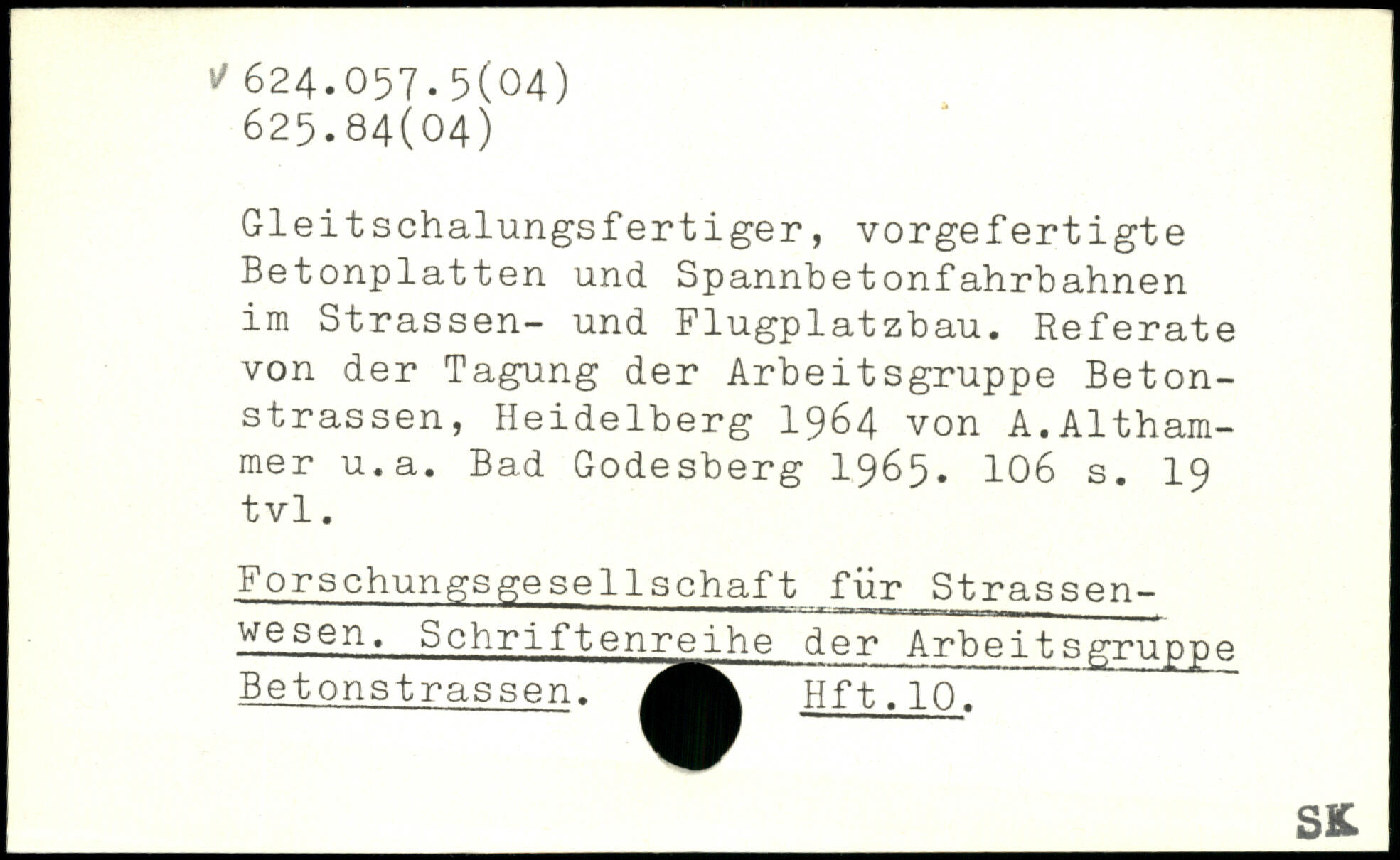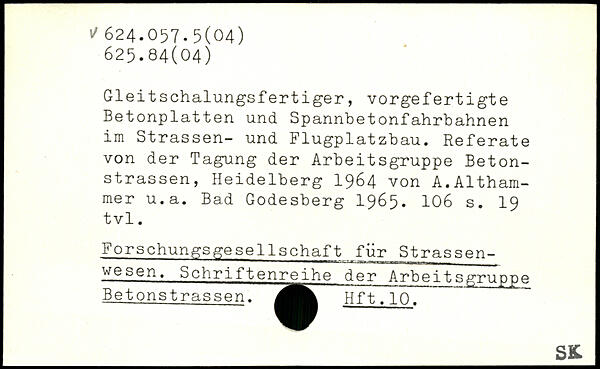 Gleitschalungsfertiger, vorgefertigte Betonplatten und Spannbetonfahrbahnen im Strassen- und Flugplatzbau. Referate von der Tagung der Arbeitsgruppe Betonstrassen, Heidelberg 1964 von A.Althammer u.a. Bad Godesberg 1965.