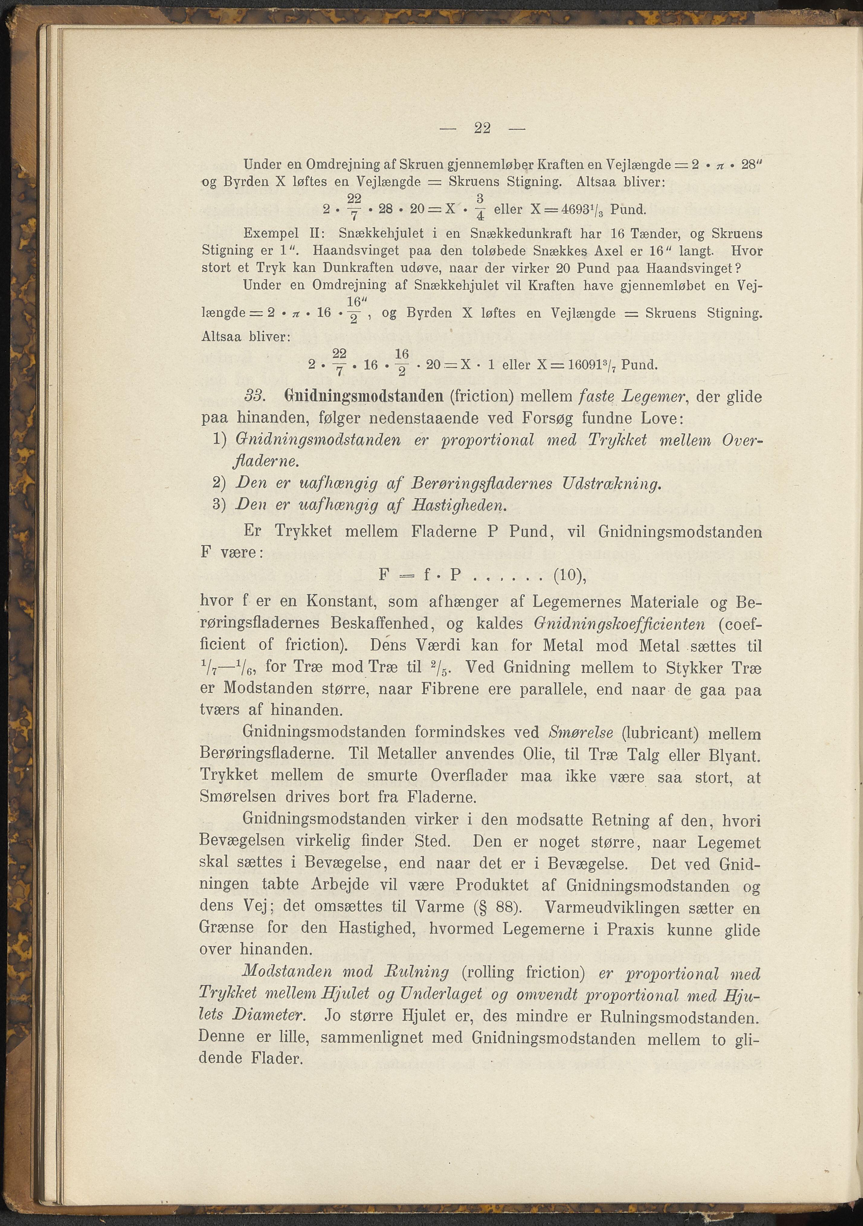 33. Gnidningsmodstanden (friction) mellem faste Legemer, der glide