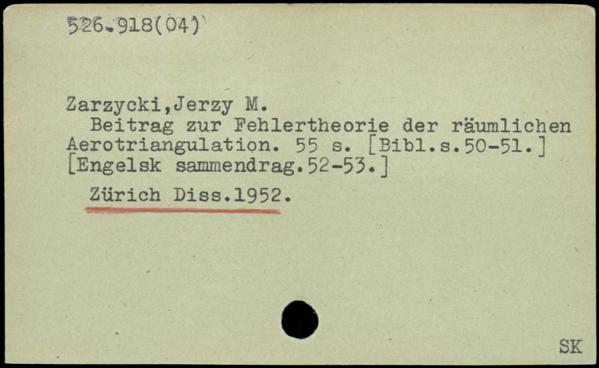Zarzycki,Jerzy M. Beitrag zur Eehlertheorie der räumlichen Aerotriangulation