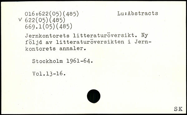 Jernkontorets litteraturöversikt. Ny följd av litteraturöversikten i Jernkontorets annaler.