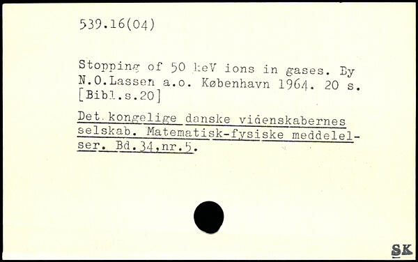 Stopping of 50 keV ions in gases. By N.O.Lassen a.o.