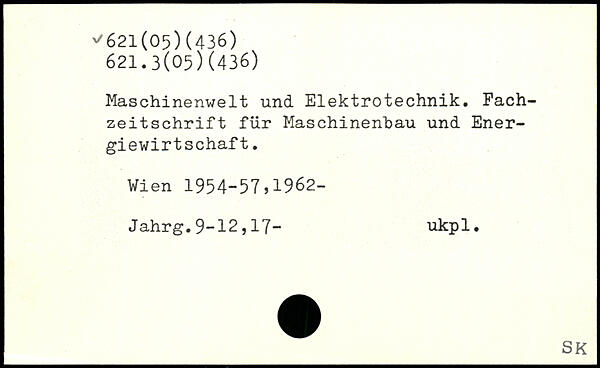 Maschinenwelt und Elektrotechnik. Fachzeitschrift für Maschinenbau und Energiewirtschaft.