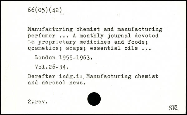 Manufacturing chemist and manufacturing perfumer ... A monthly journal devoted to proprietary medicines and foods; cosmetics; soaps; essential oils ...