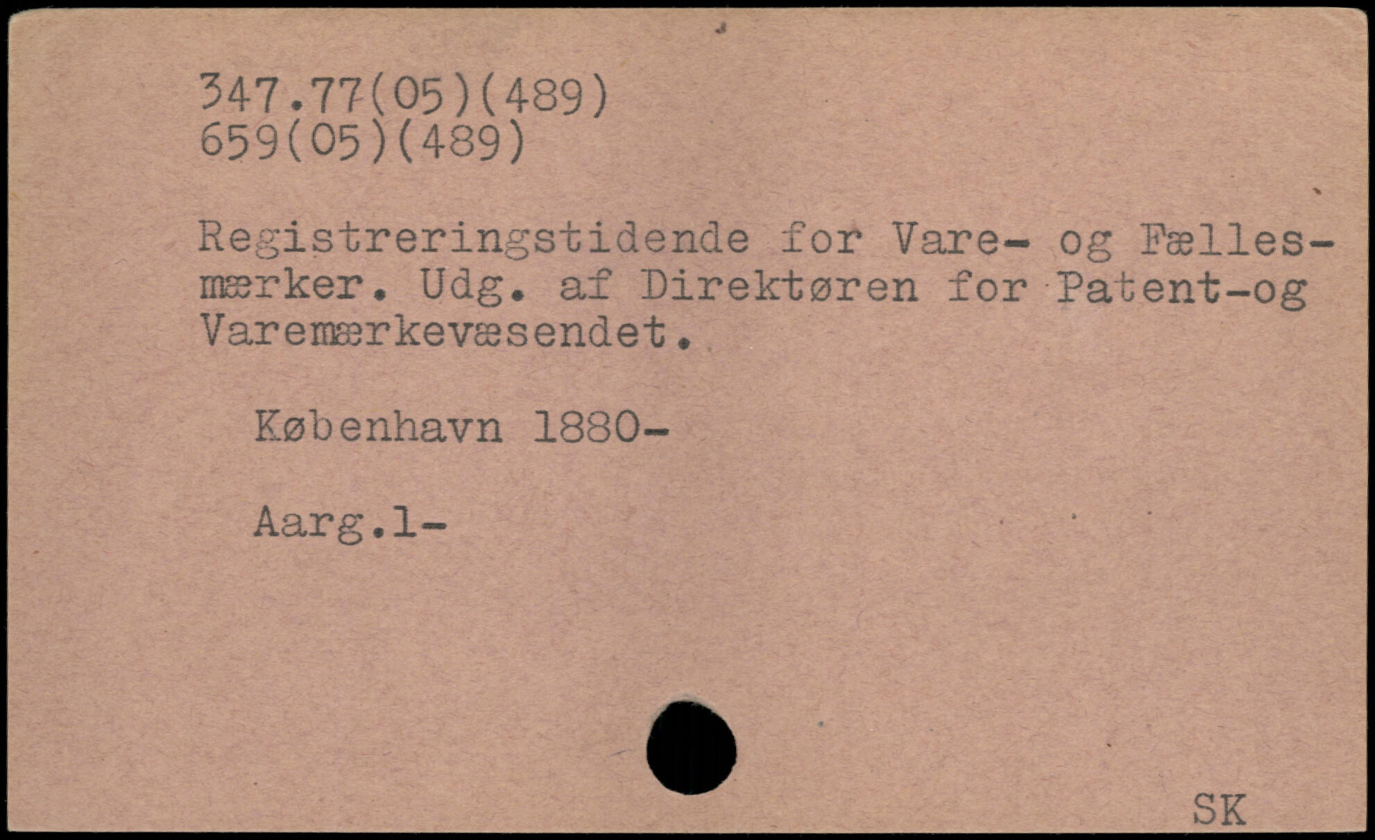 Registreringstidende for Vare- og Fælles-mærker, Udg. af Direktøren for Patent-og Varemærkevæsendet.