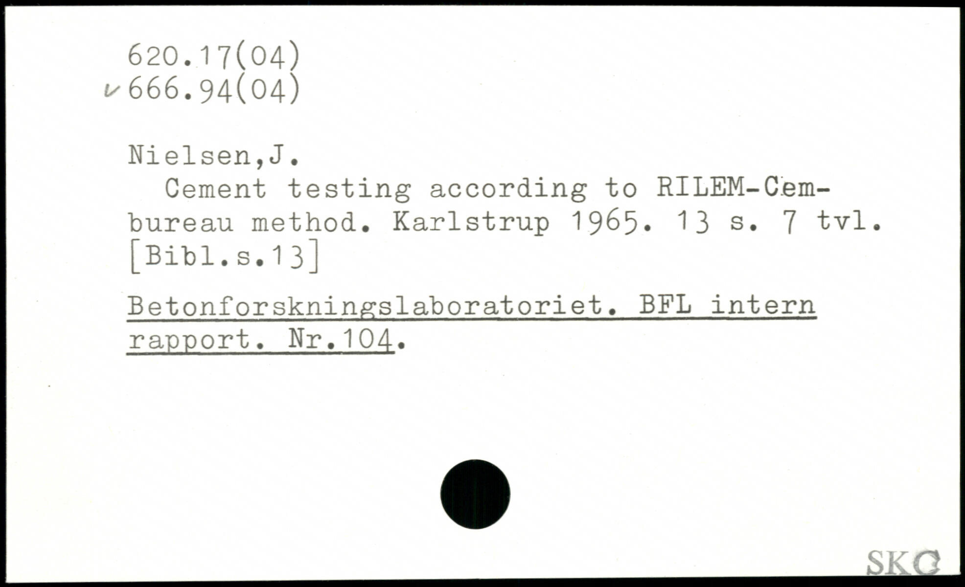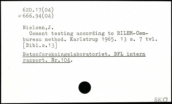 Cement testing according to RILEM-Cem-bureau method. Karlstrup 1965