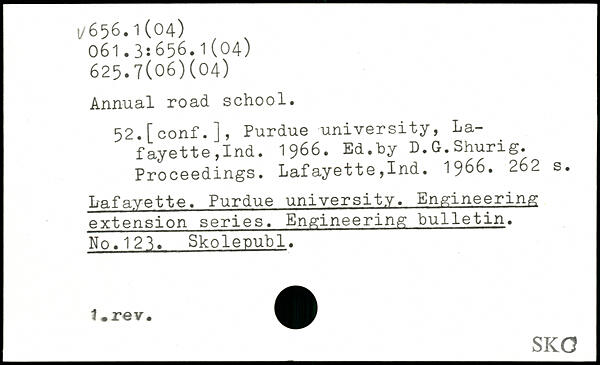 Annual road school. 52.[conf.], Purdue university, Lafayette,Ind. 1966. Ed.by D.G.Shurig. Proceedings. Lafayette,Ind. 1966.