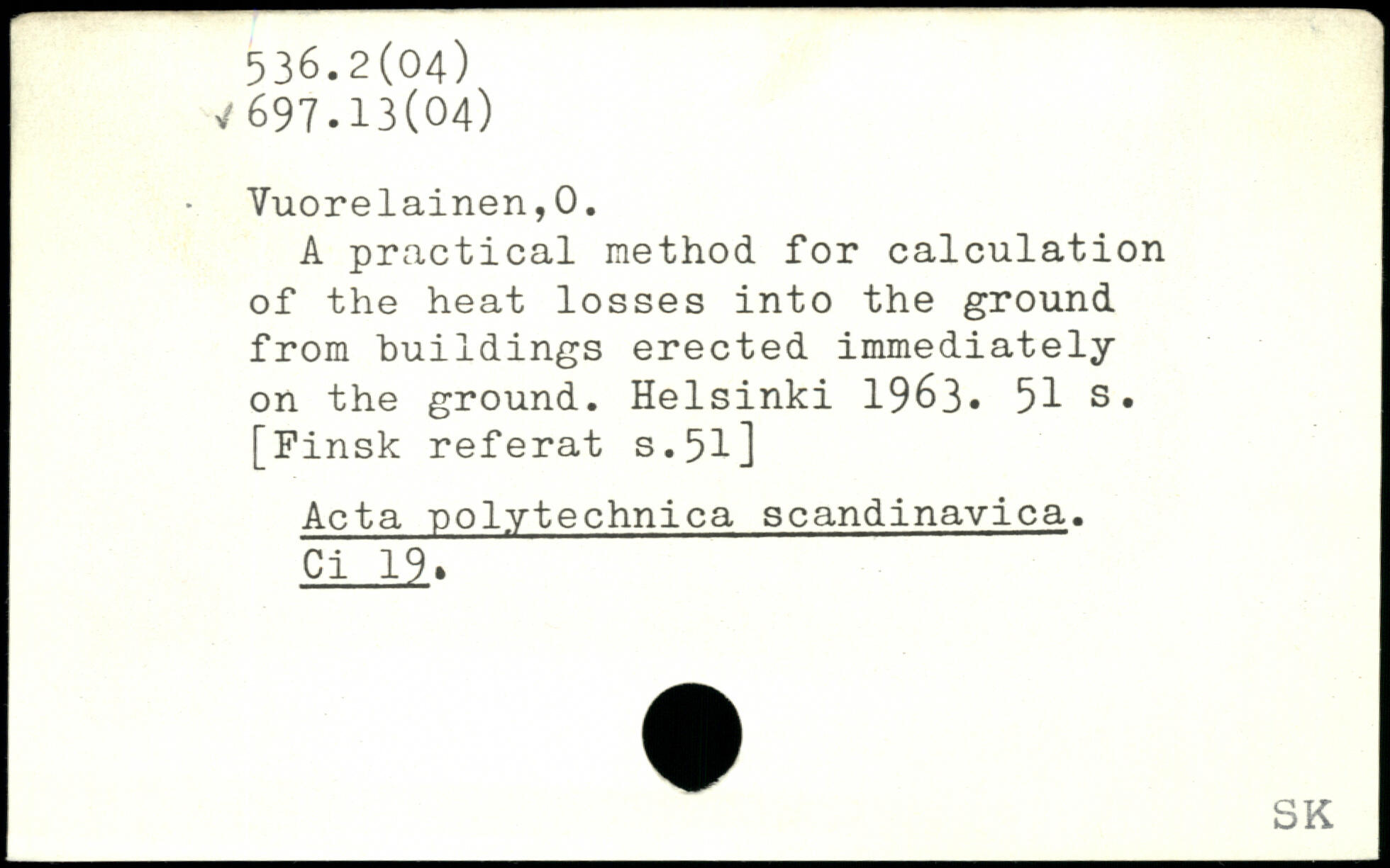 A practical method, for calculation of the heat losses into the ground from buildings erected immediately on the ground.