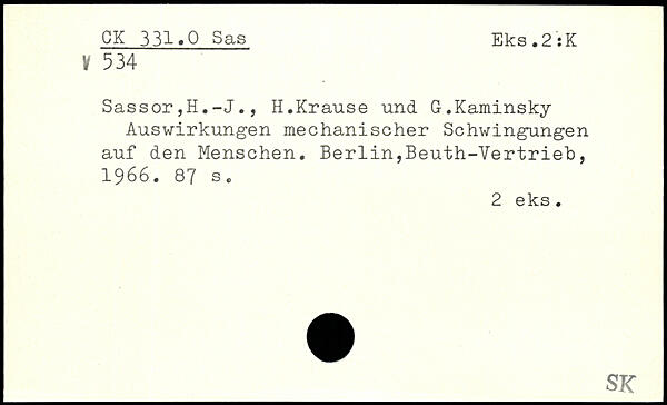 Sassor,H.-J., H.Krause und G.Kaminsky Auswirkungen mechanischer Schwingungen auf den Menschen.
