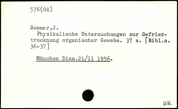 Physikalische Untersuchungen zur Gefriertrocknung organischer Gewebe.