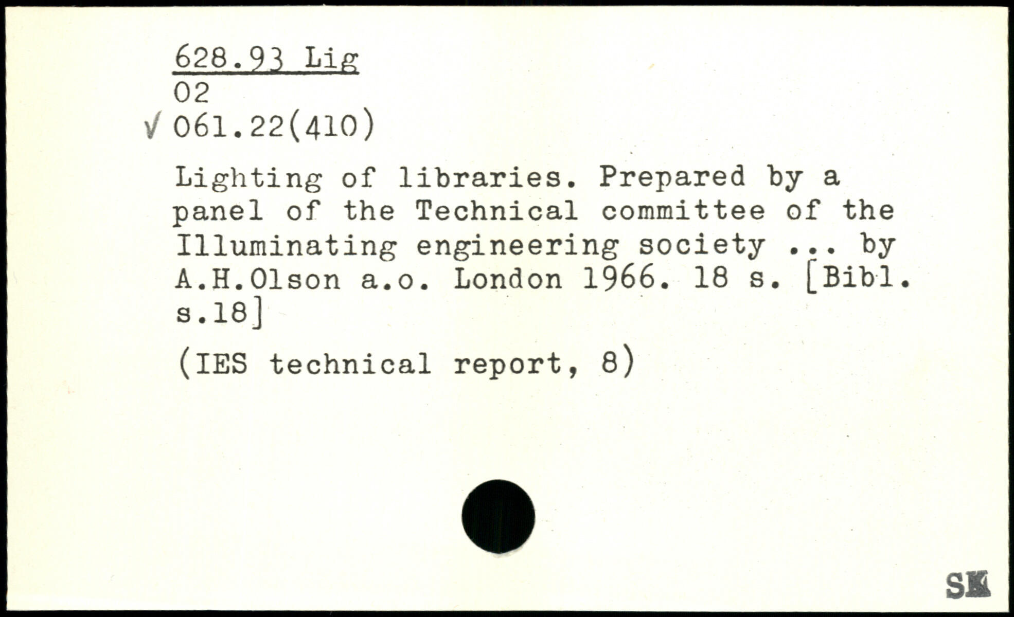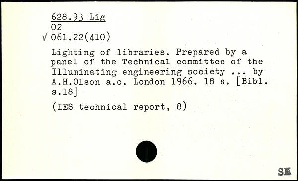 Lighting of libraries. Prepared by a panel of the Technical committee of the Illuminating engineering society ... by A.H.Olson a.o.