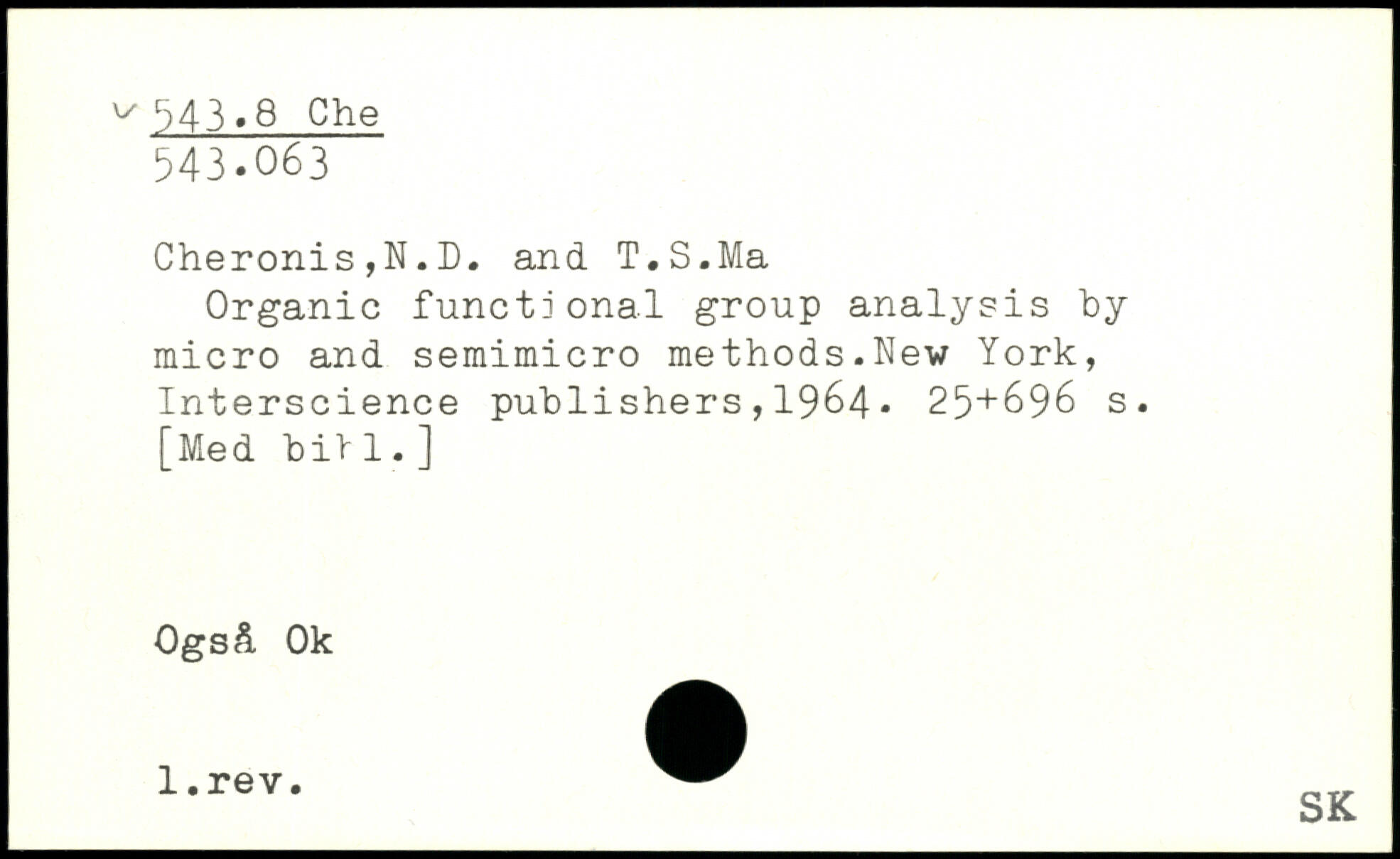 Cheronis,N.D. and T.S.Ma Organic functional group analysis by micro and semimicro methods.