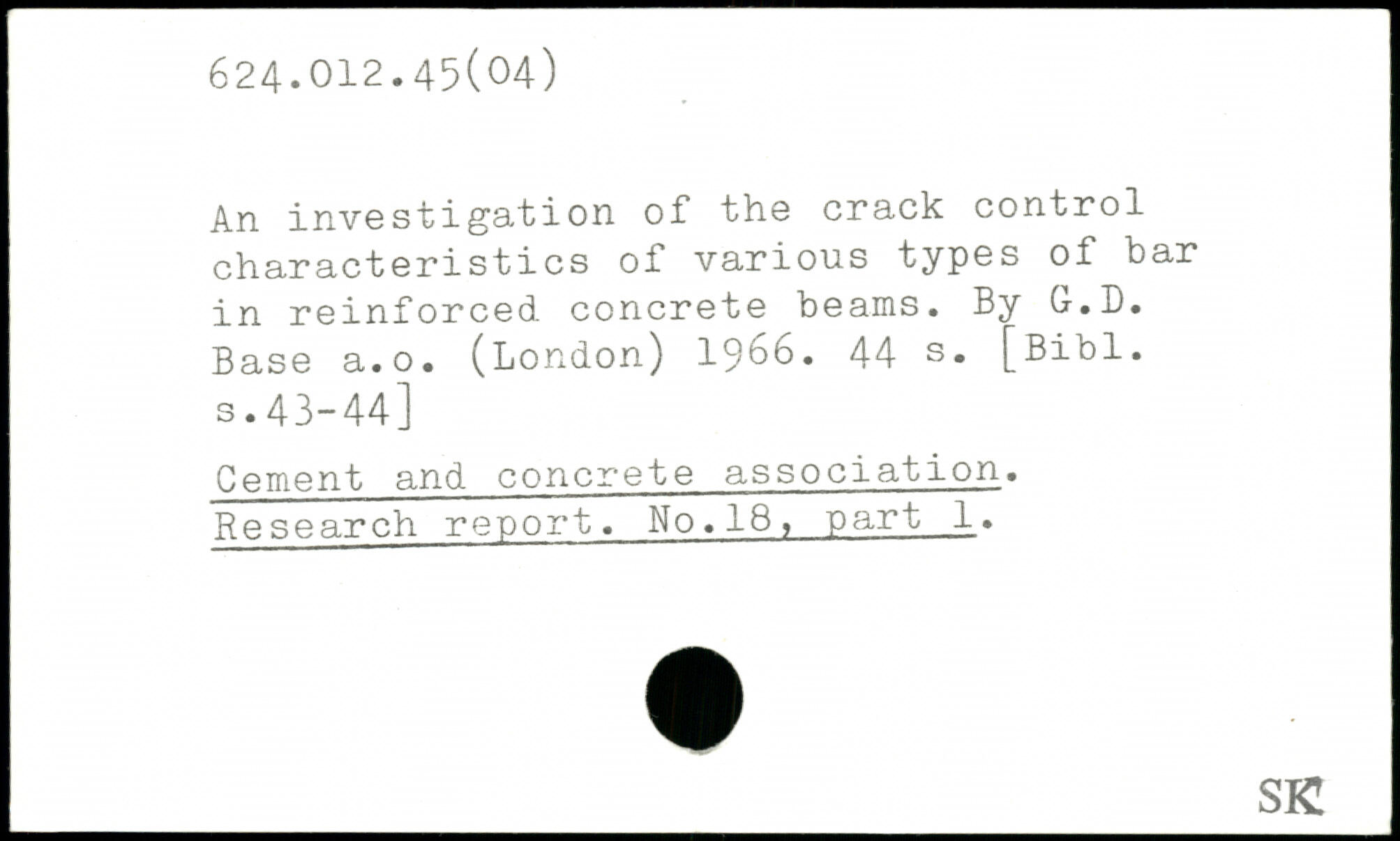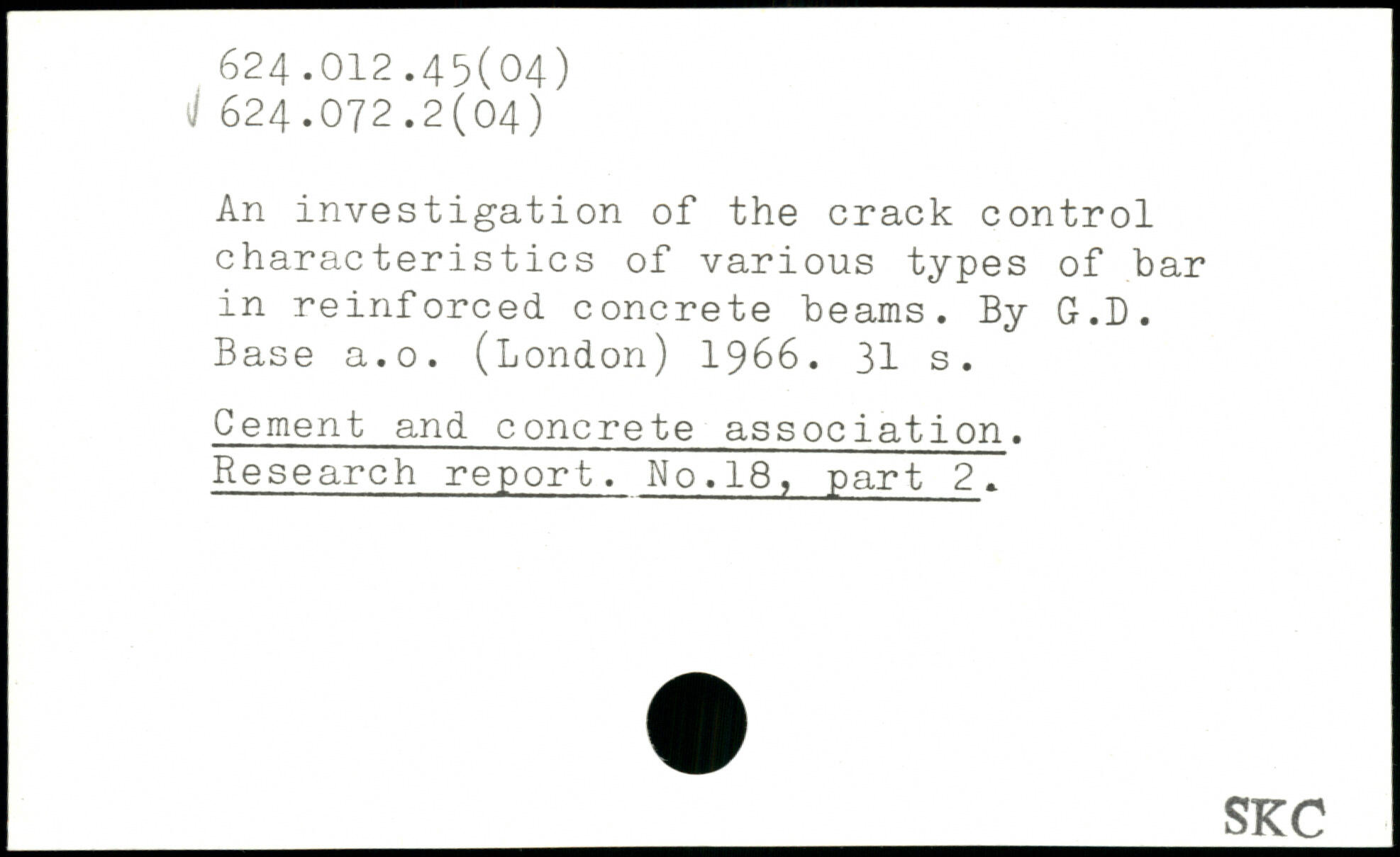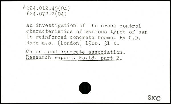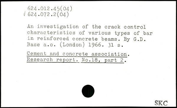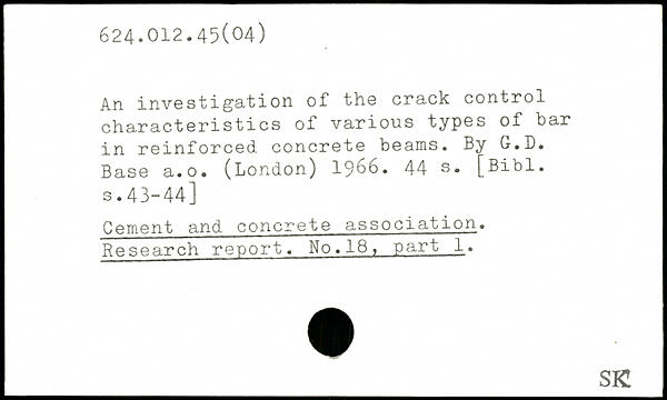 An investigation of the crack control characteristics of various types of bar in reinforced concrete beams. By G.D. Base a.o. (London) 1966.