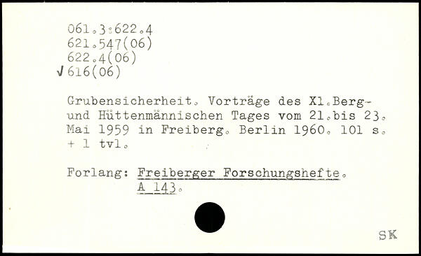 Grubensicherheito Vorträge des XIeBerg-und Hüttenmännischen Tages vom 210bis 23.. Mai 1959 in Freiberg^