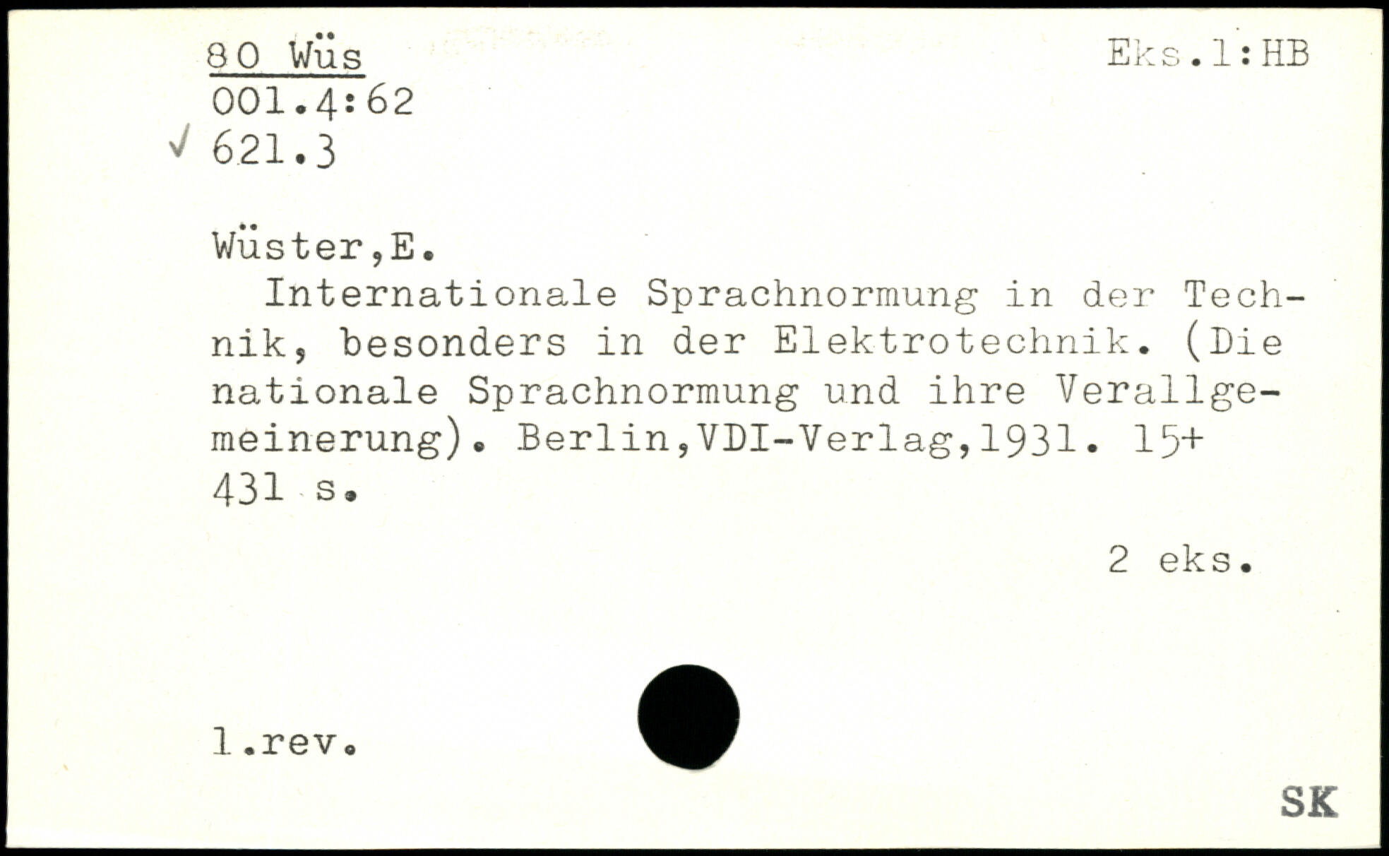 Internationale Sprachnormung in der Technik, besonders in der Elektrotechnik. (Die nationale Sprachnormung und ihre Verallgemeinerung).