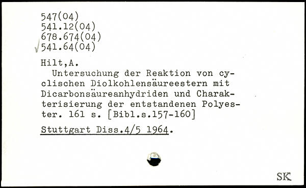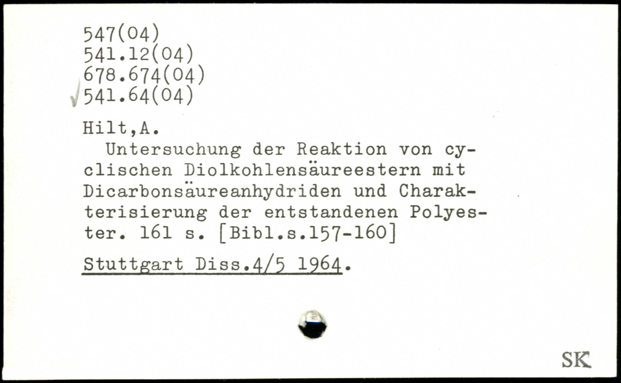 Untersuchung der Reaktion von cyclischen Diolkohlensäureestern mit Dicarbonsäureanhydriden und Charakterisierung der entstandenen Polyester. I6I s.