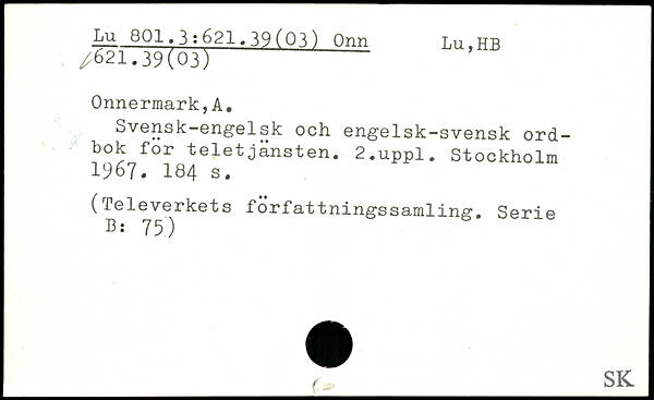 Svensk-engelsk och engelsk-svensk ordbok for teletjänsten.