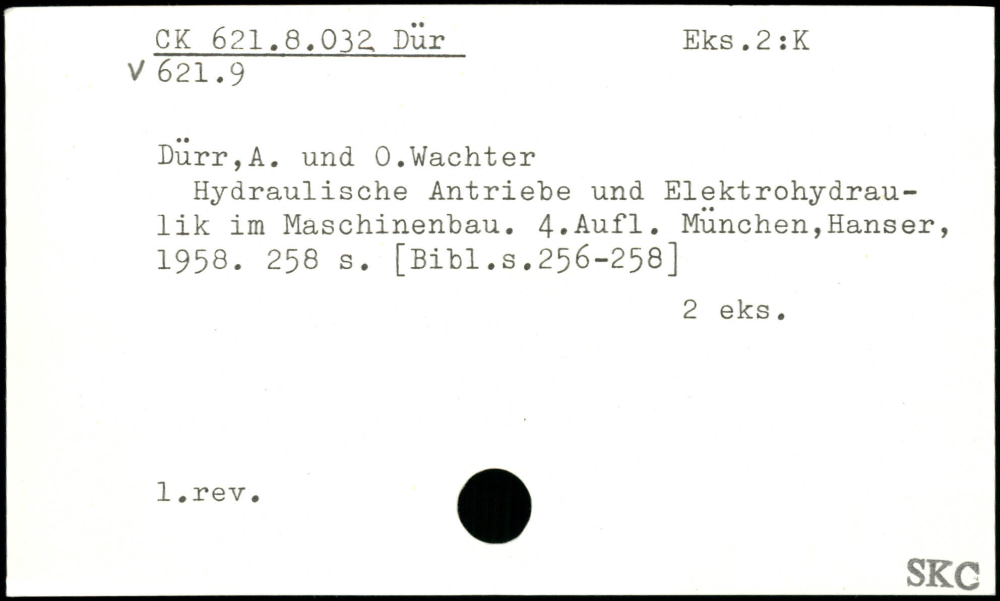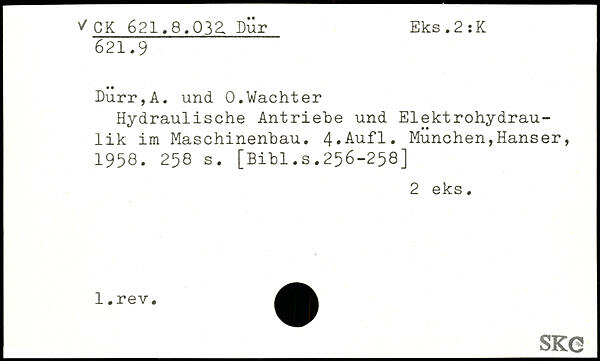 Durr,A. und 0.Wächter Hydraulische Antriebe und Elektrohydrau-lik im Maschinenbau.
