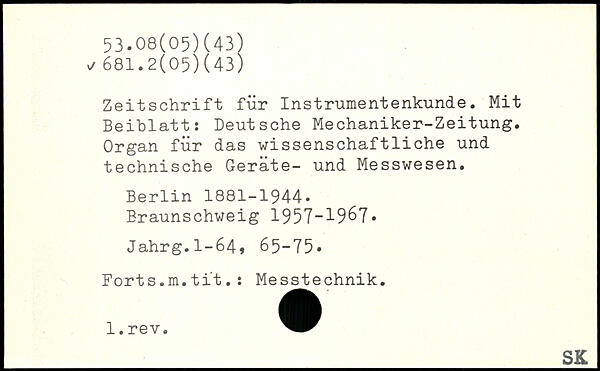 Zeitschrift für Instrumentenkunde. Mit Beiblatt: Deutsche Mechaniker-Zeitung. Organ für das wissenschaftliche und technische Gerate- und Messwesen.