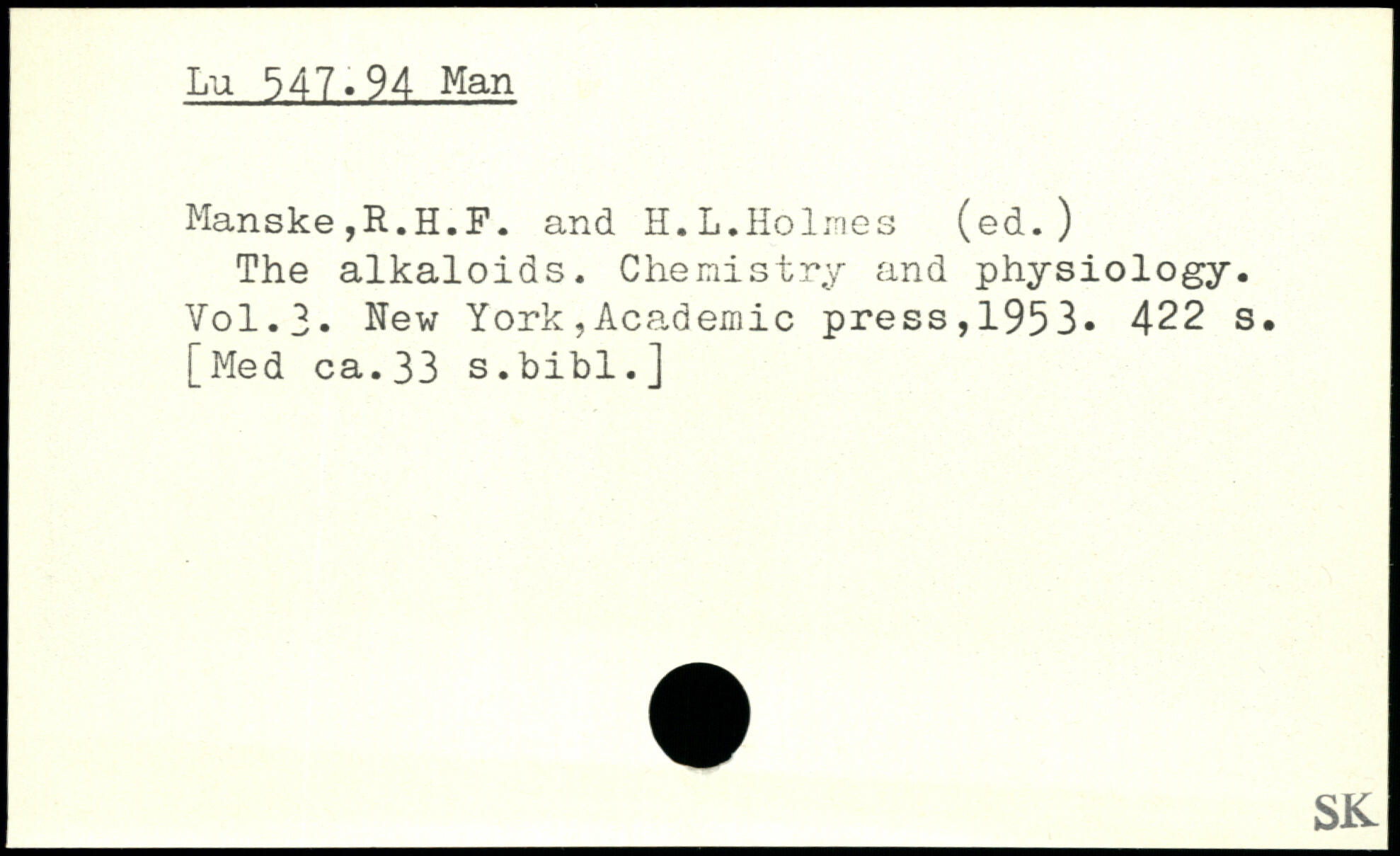 The alkaloids. Chemistry and physiology.