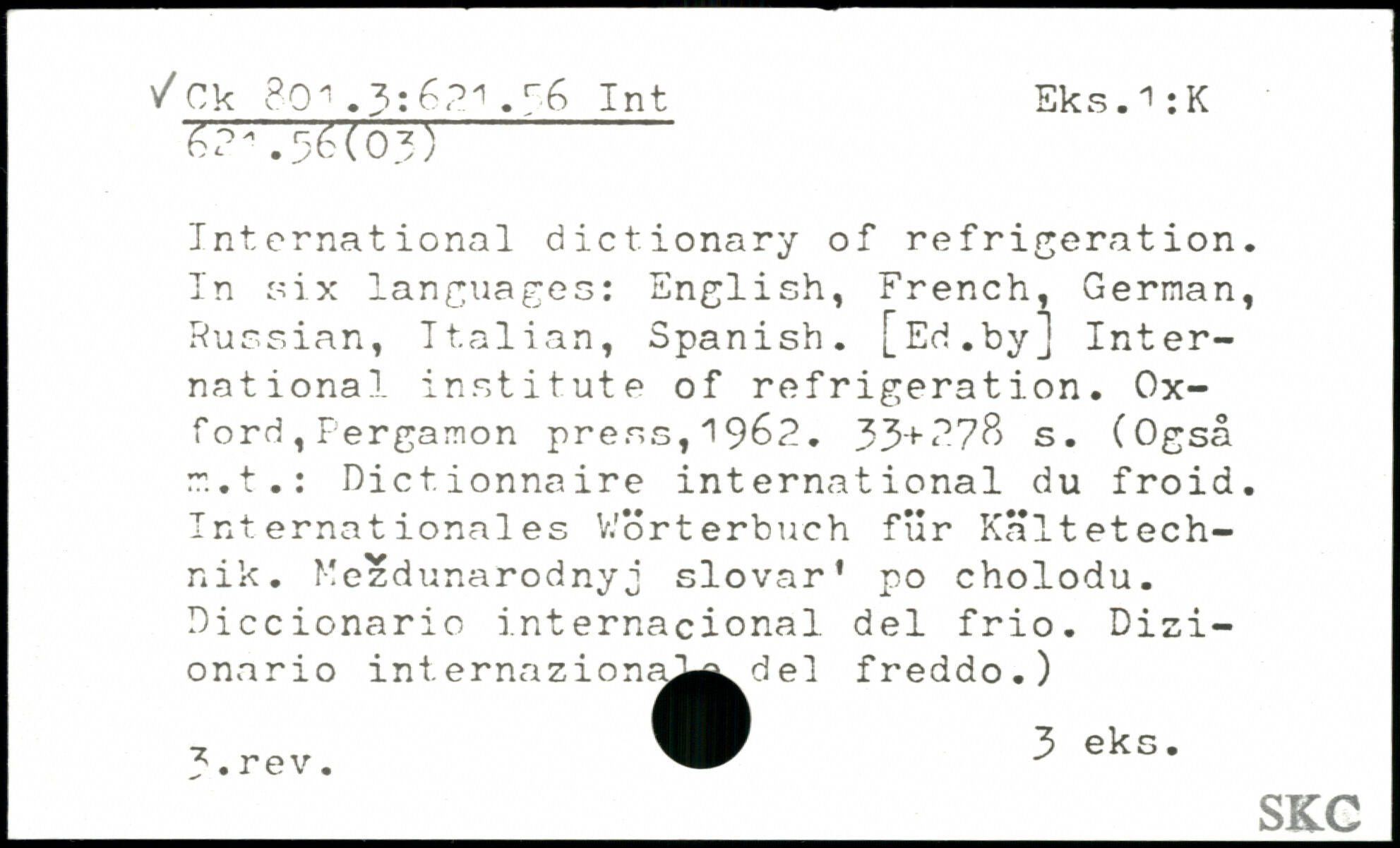 International dictionary of refrigeration. In six languages: English, French, German, Russian, Italian, Spanish.