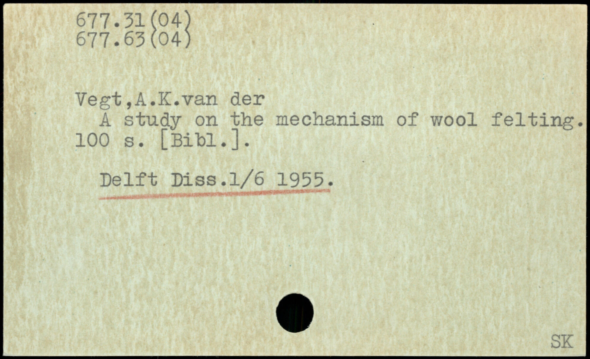 Vegt,A.K.van der A study on the mechanism of wool felting.
