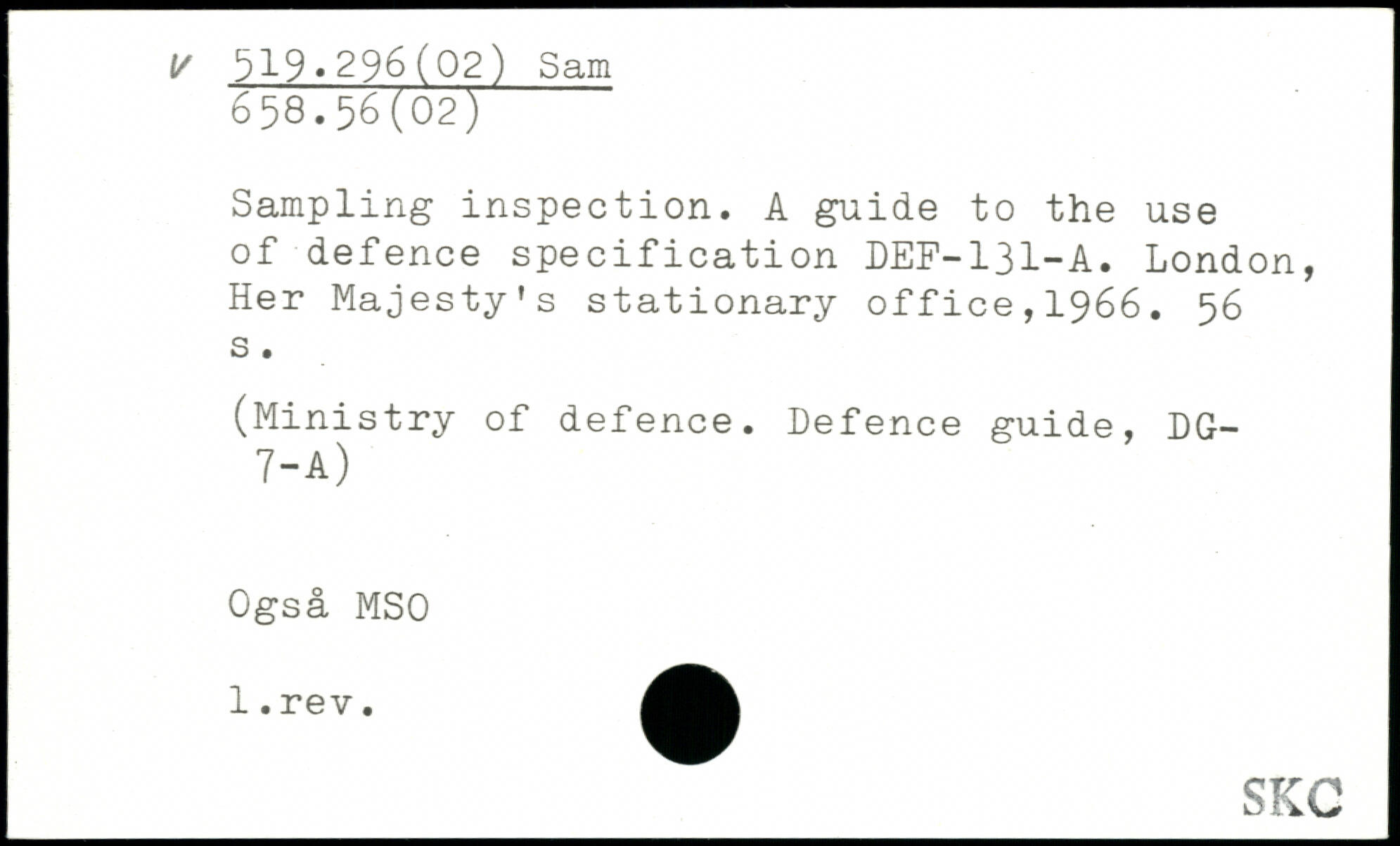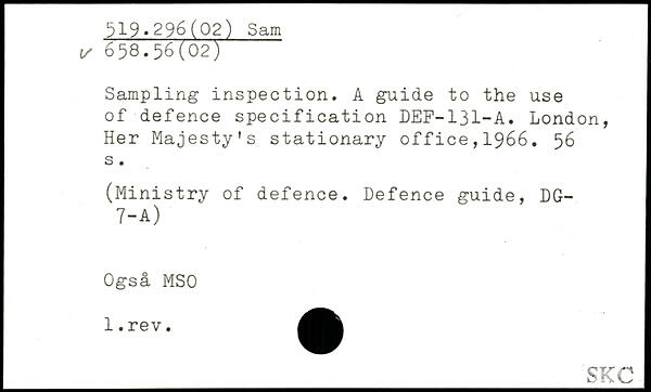 Sampling inspection. A guide to the use of defence specification DEF-131-A. London, Her Majesty's stationary office,1966.