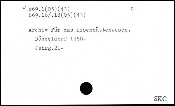 Archiv für das Eisenhüttenwesen. Düsseldorf 1950-Jahrg.21-