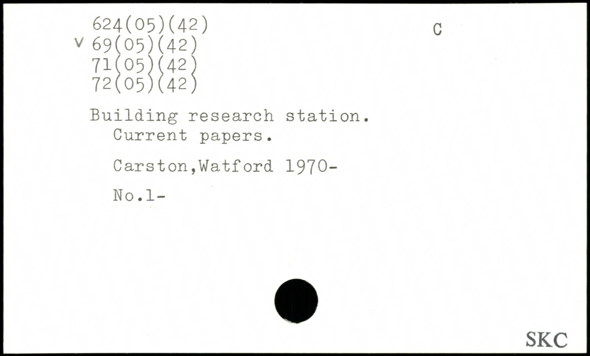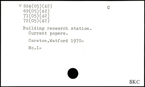Building research station. Current papers. Carston,Watford 1970- No.1-