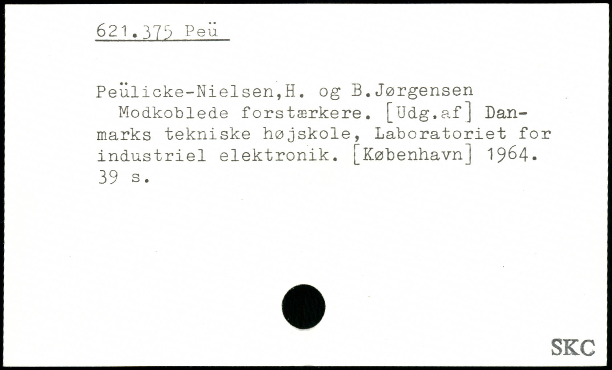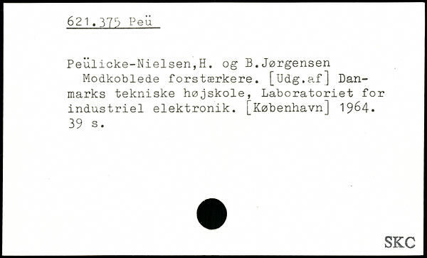 Modkoblede forstærkere. [Udg.af] Danmarks tekniske højskole, Laboratoriet for industriel elektronik. [København] 19&4.