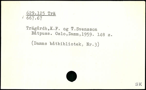 Trägårdh,K,F, og T,Svensson Båtpuss. Oslo,Damms 1959'