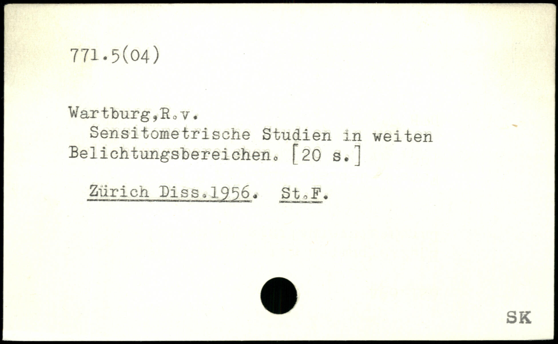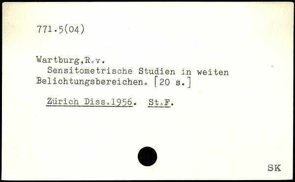 Wartburg,Hoy. Sensitometrische Studien in weiten Belichtungsbereicheno [