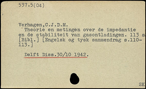 Theorie en metingen over de impedantie en de stabiliteit van gasontladingen.