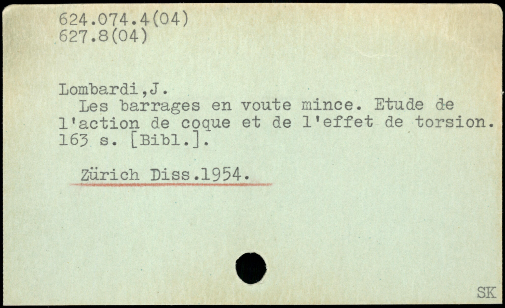 Les barrages en voûte mince. Etude de l'action de coque et de 1.effet de torsion.