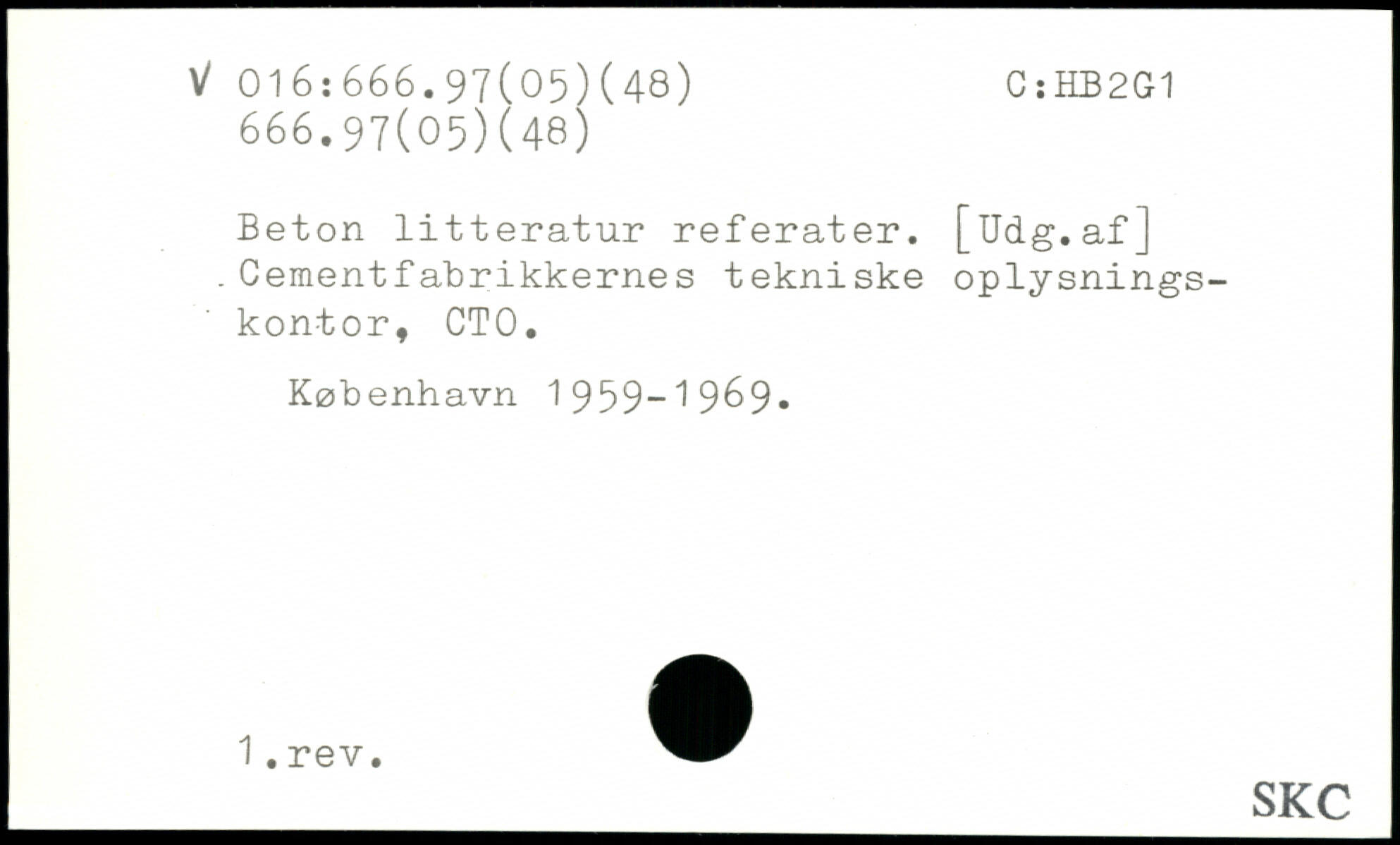 Beton litteratur referater. [Udg.af] .Cementfabrikkernes tekniske oplysningskontor, CTO.